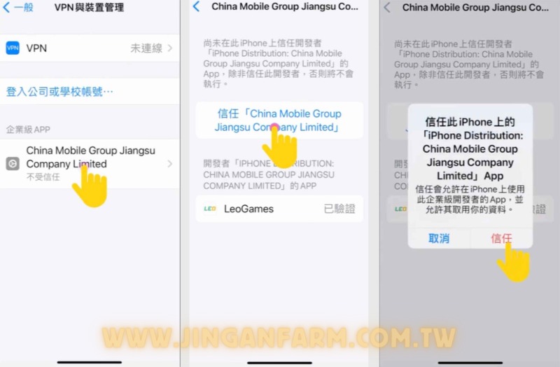 Step4.完成後,跳轉到VPN設定畫面,點擊「信任」,即完成安裝。
