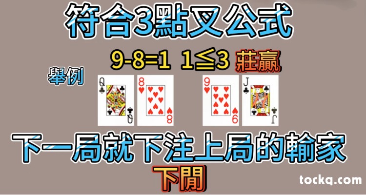 檢查公式條件:三點叉公式要求點數差≥1且≤3。如果某局的點數差符合這一條件,則可以根據百家樂公式建議下注在上局的輸家身上。
